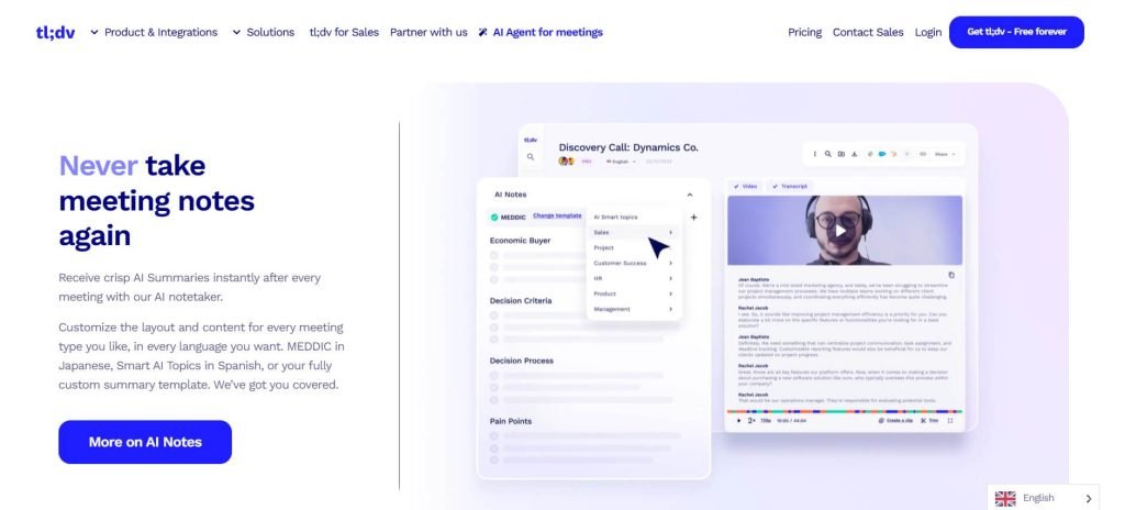 4. tl;dv: Best Overall AI-Powered Meeting Search Tool