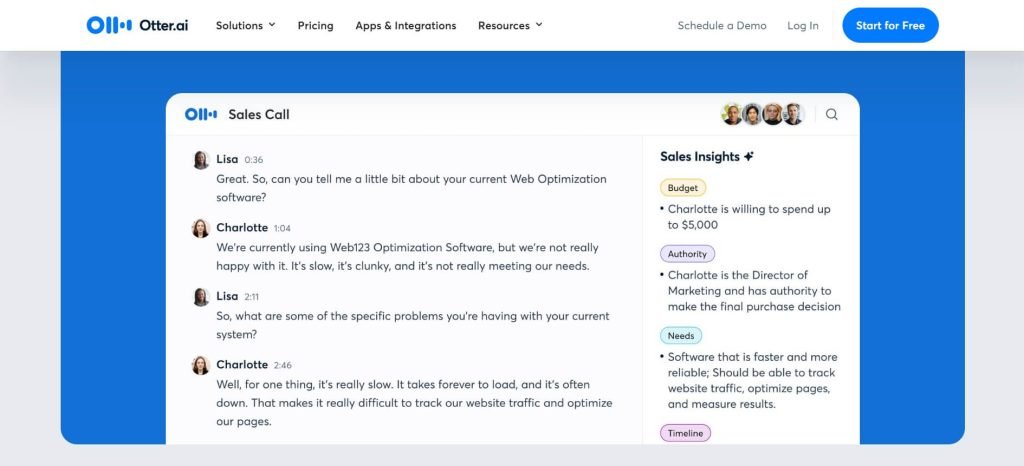 Otter’s AI Chat allows you in seconds to see whether or not you were mentioned in a meeting or if you were assigned any tasks to do. It is also helpful if you missed half the conversation.